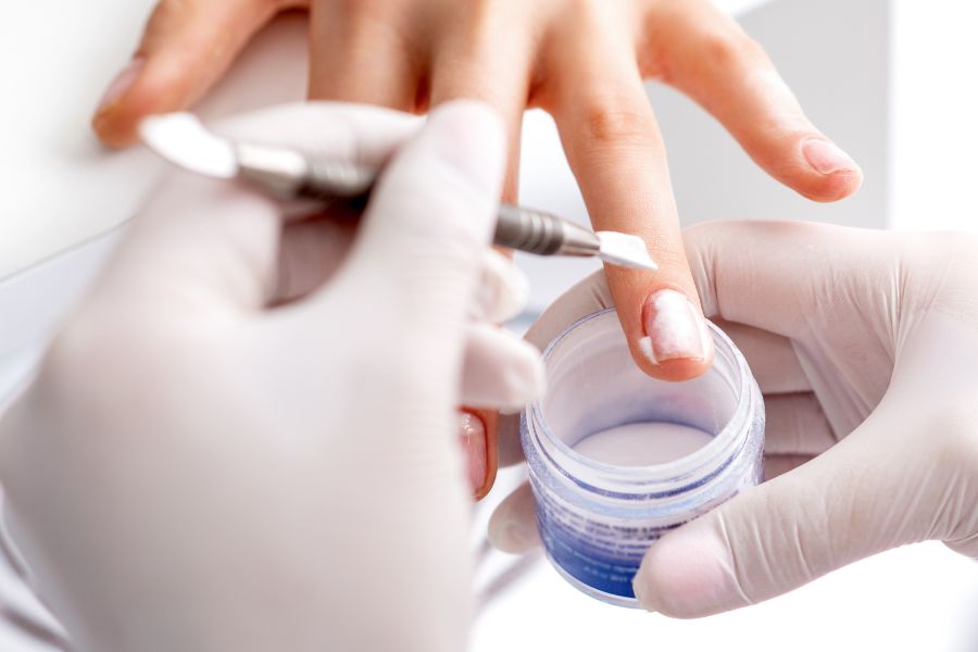 - Đừng để làn da tiếp xúc đến đầu cọ đắp bột acrylic, dung dịch acrylic, keo, acetone … sẽ làm da khô và dị ứng.